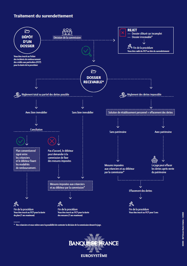 Schéma des procédures de surendettement (source Banque de France)